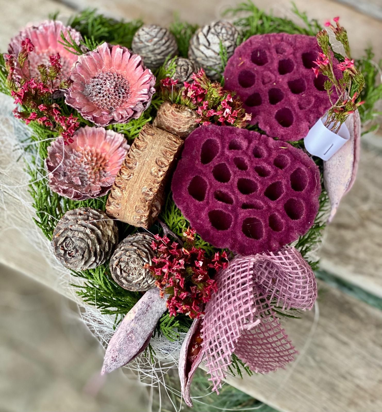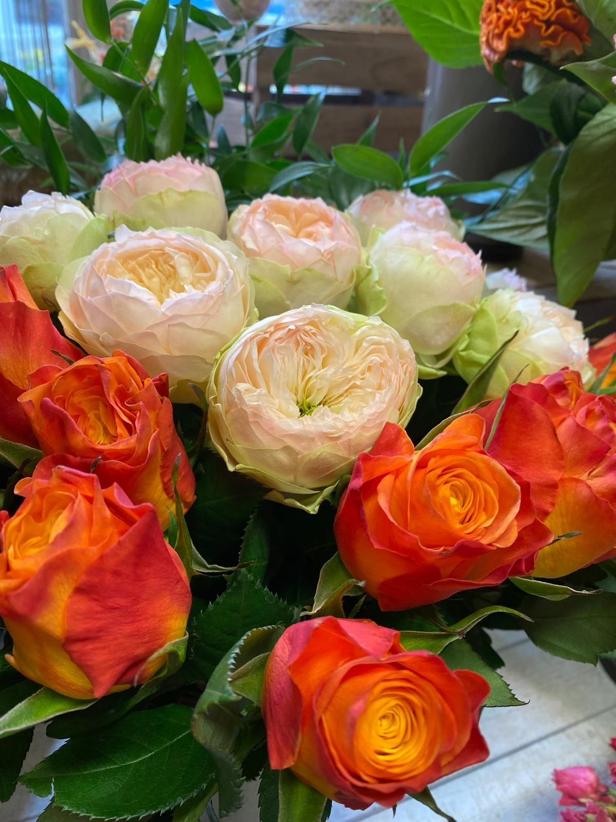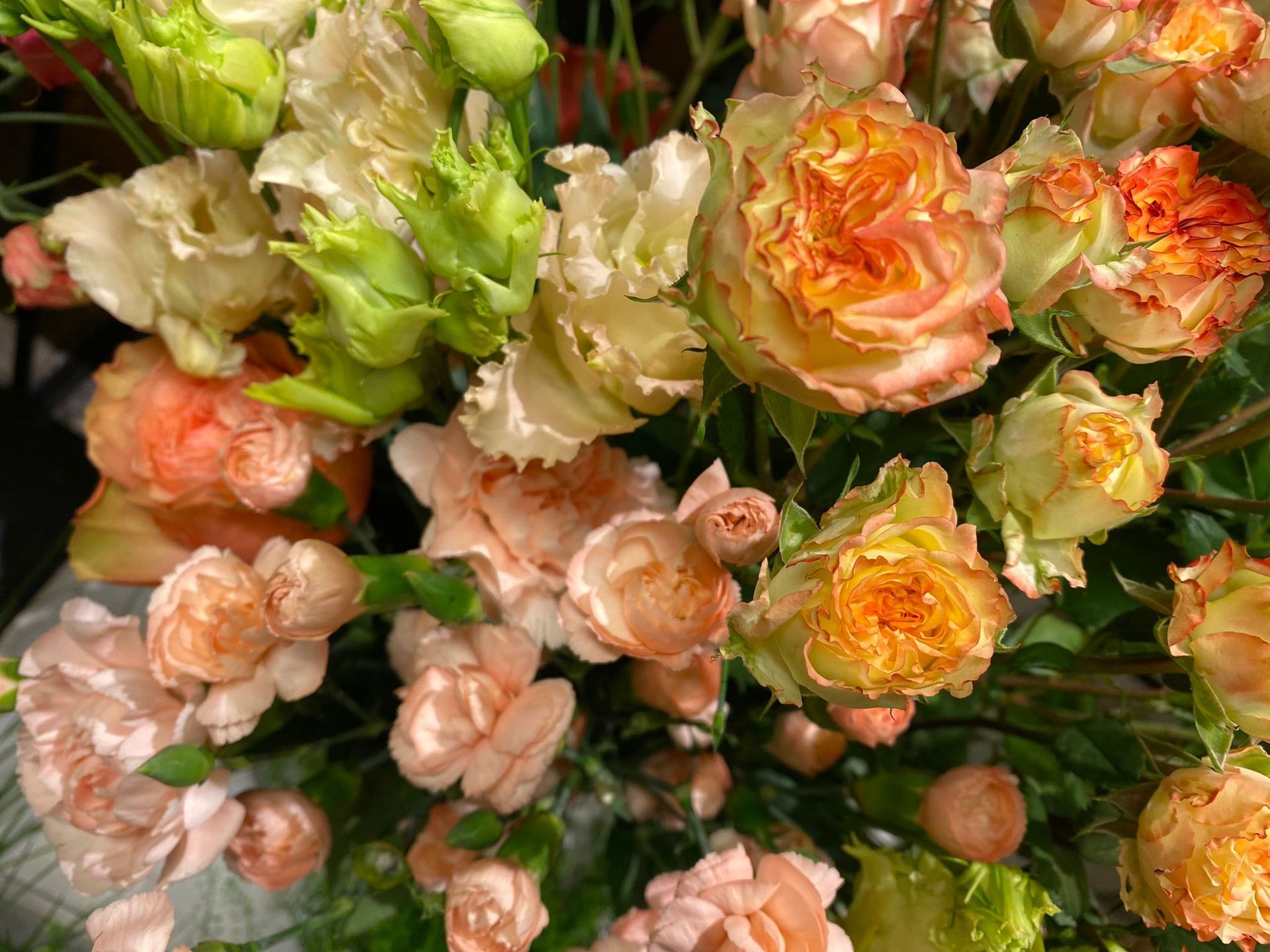 Nous travaillons avec de nombreuses variétés de fleurs fraîches, et aimons tout particulièrement composer des bouquets avec des fleurs de saison.