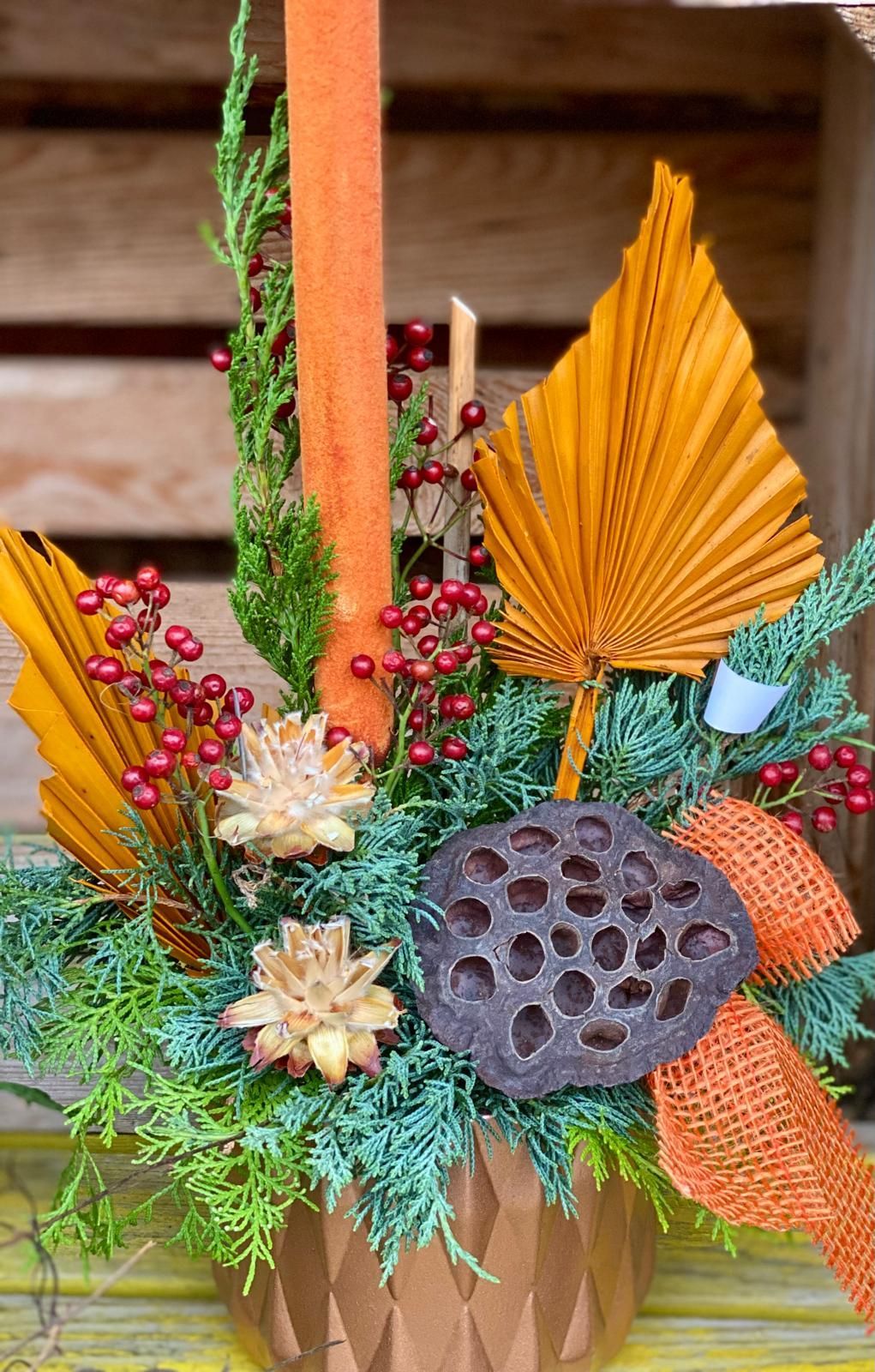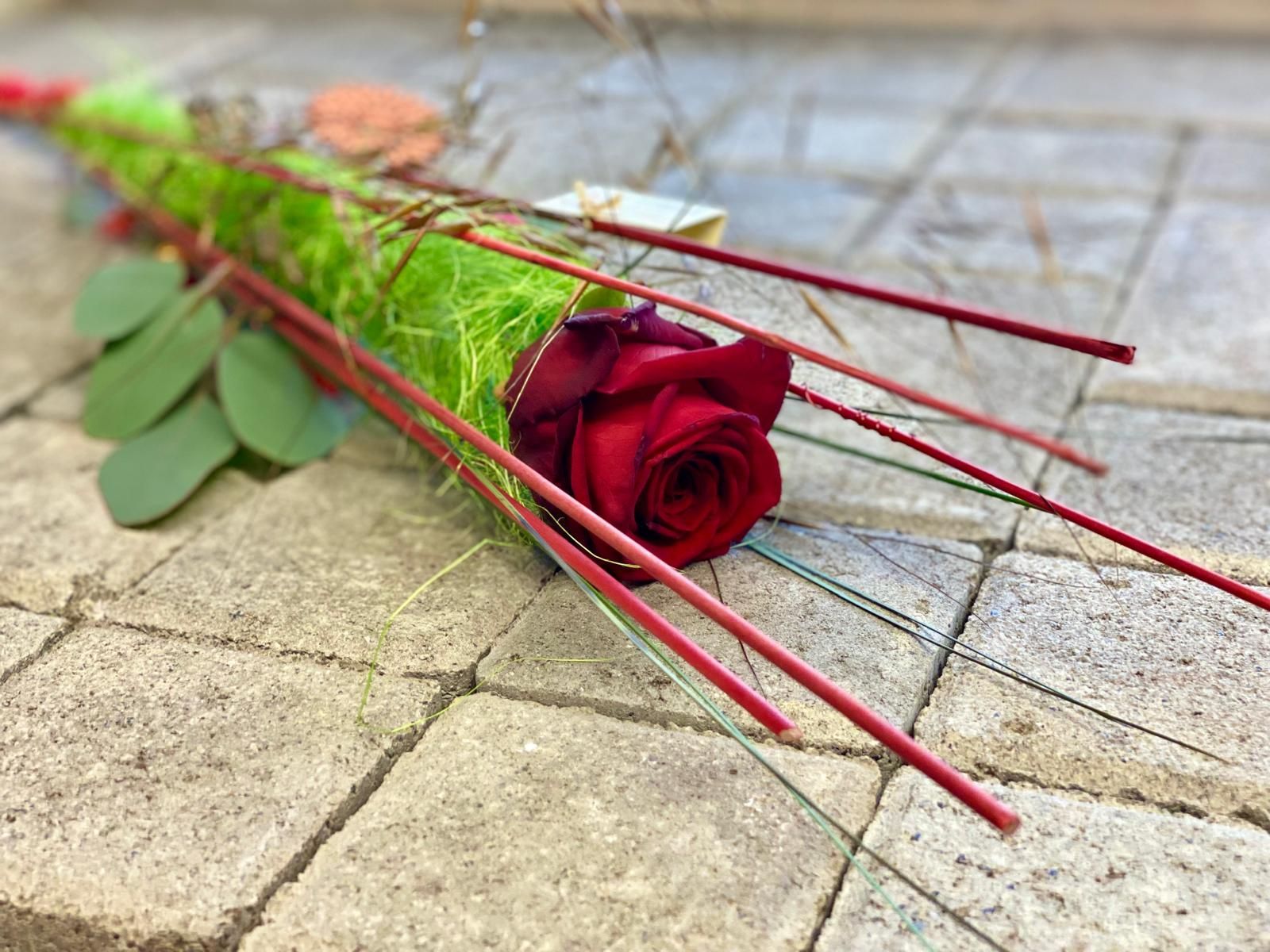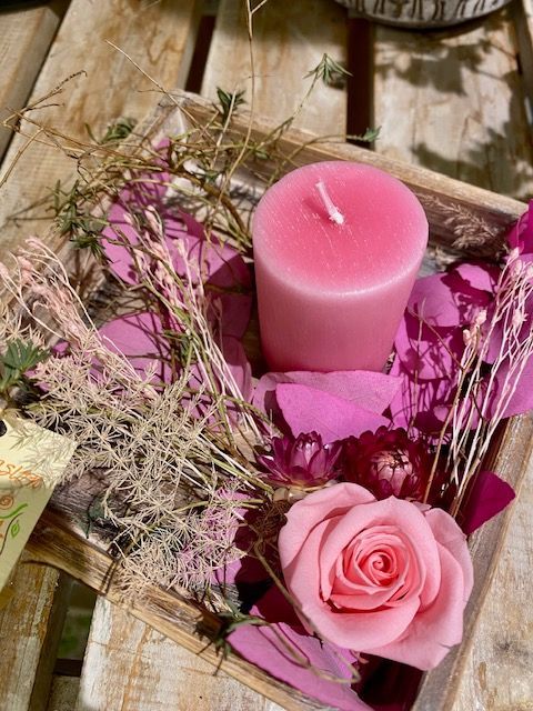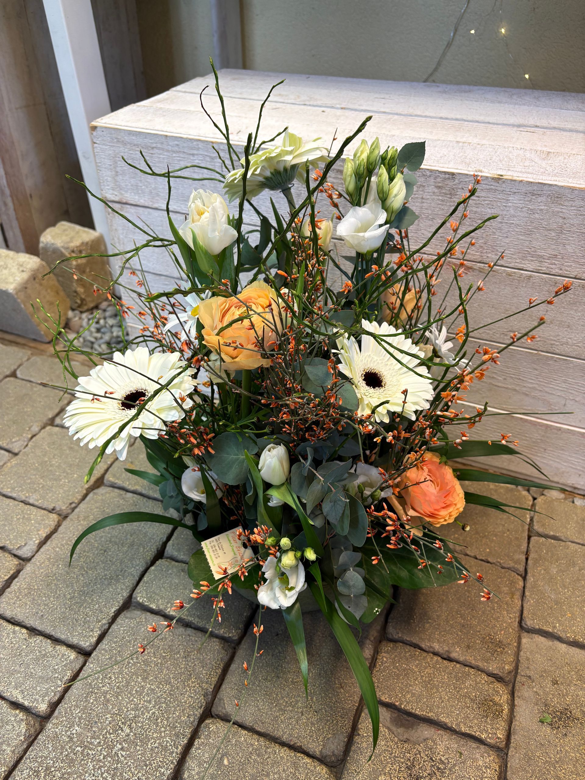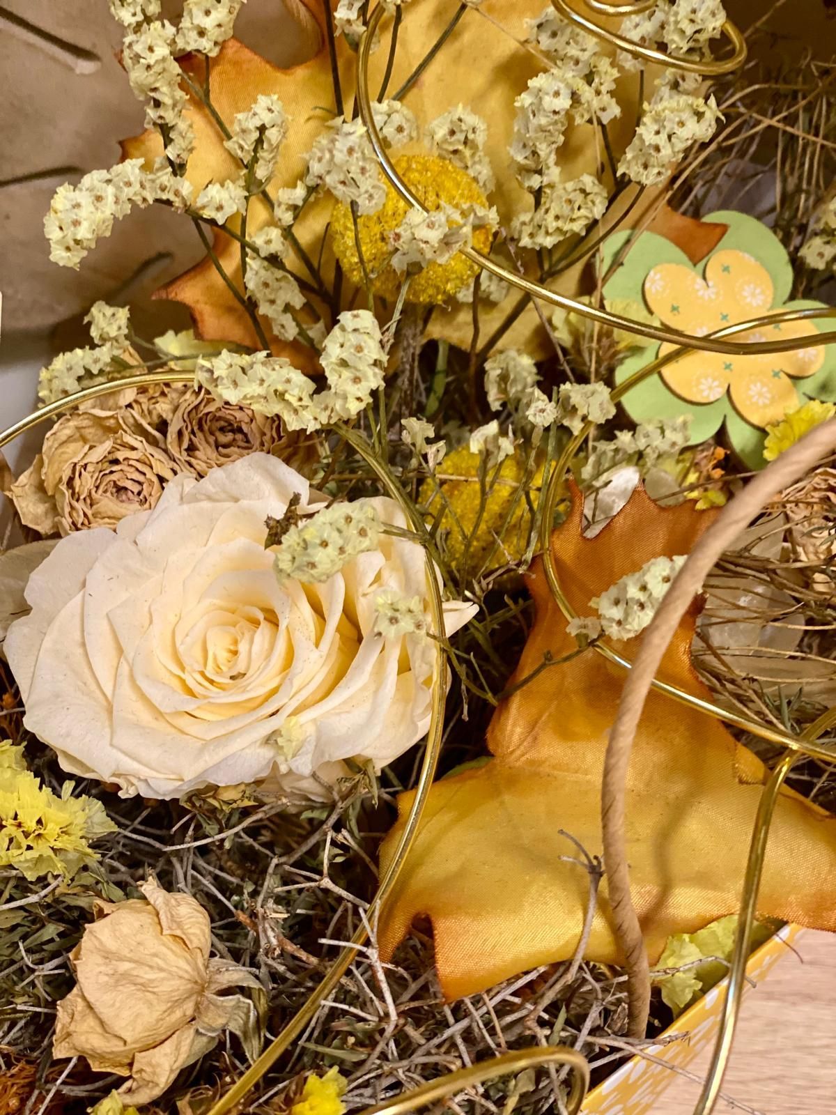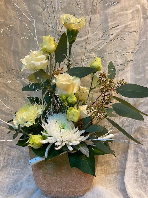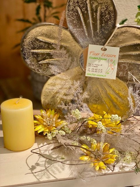 les fleurs fraîches sont piquées dans une mousse synthétique imbibée d'eau, ajouter de l'eau tous les 2 jours.